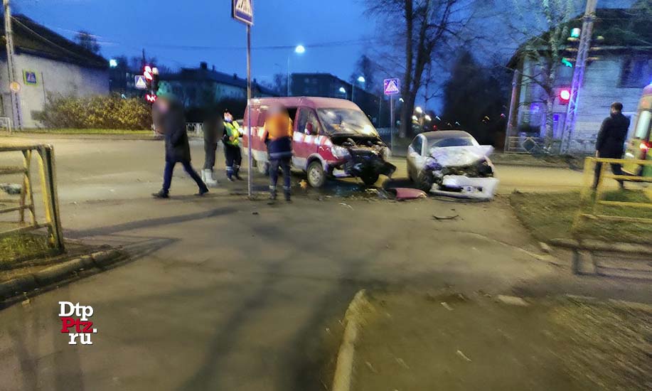 Накануне лобовое столкновение двух автомобилей произошло в центре Петрозаводска.
