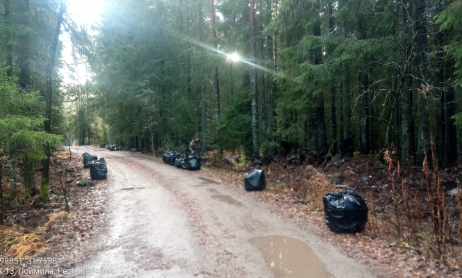 Так к уборке данной свалки в начале осени присоединился Карельский экологический оператор, помогая техникой расчищать крупные навалы, часть мусора работники лесничества убирали вручную. Однако ликвидировать свалку полностью до выпадения снега не удалось, оставалось расчистить еще порядка 500 куб. м.