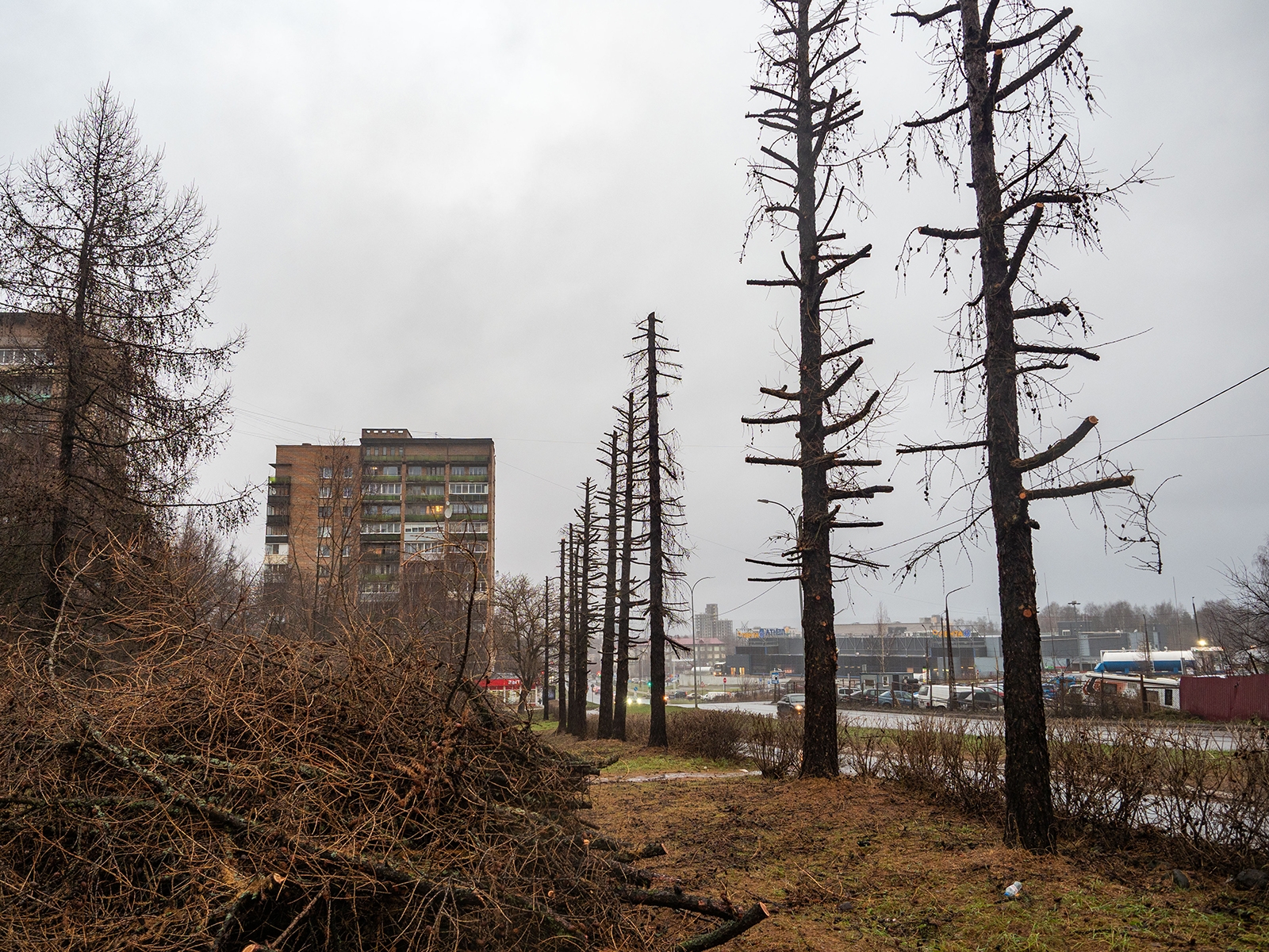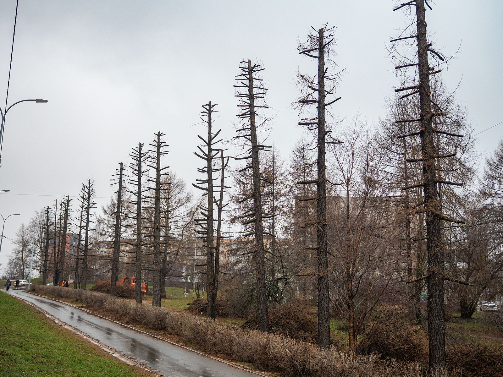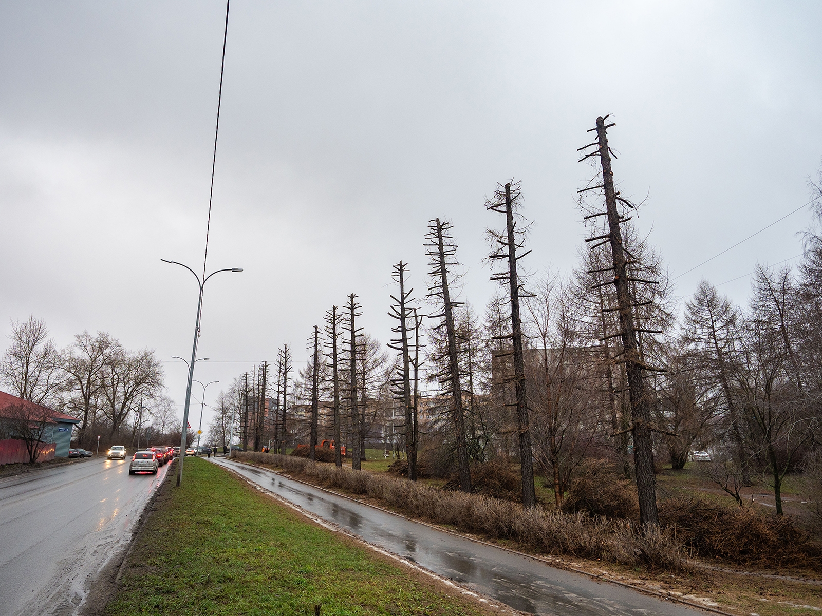 На срубленные ветки лиственниц на улице Ленинградская обратил внимание фотограф Игорь Подгорный.