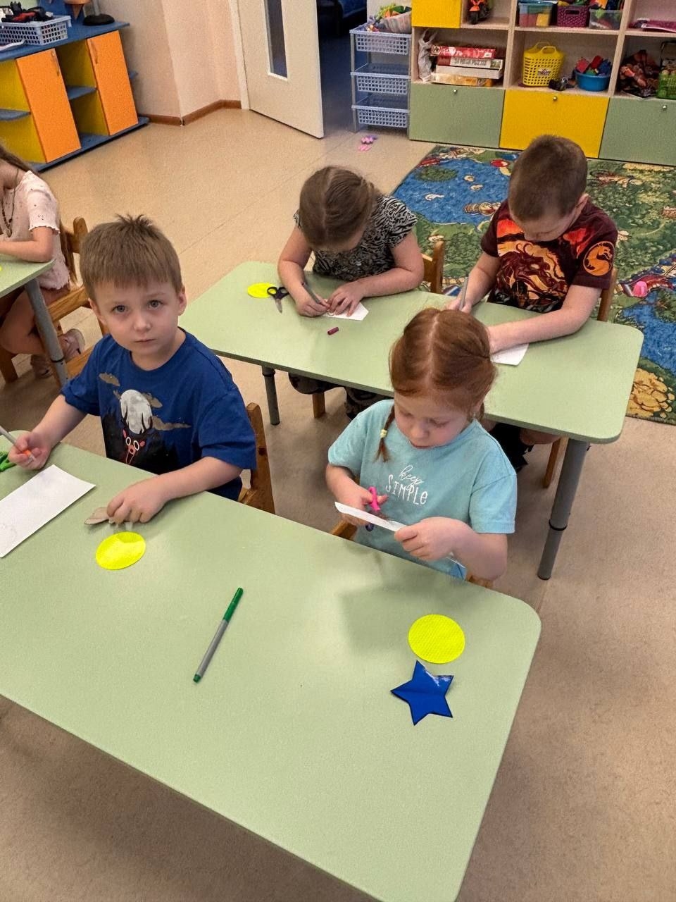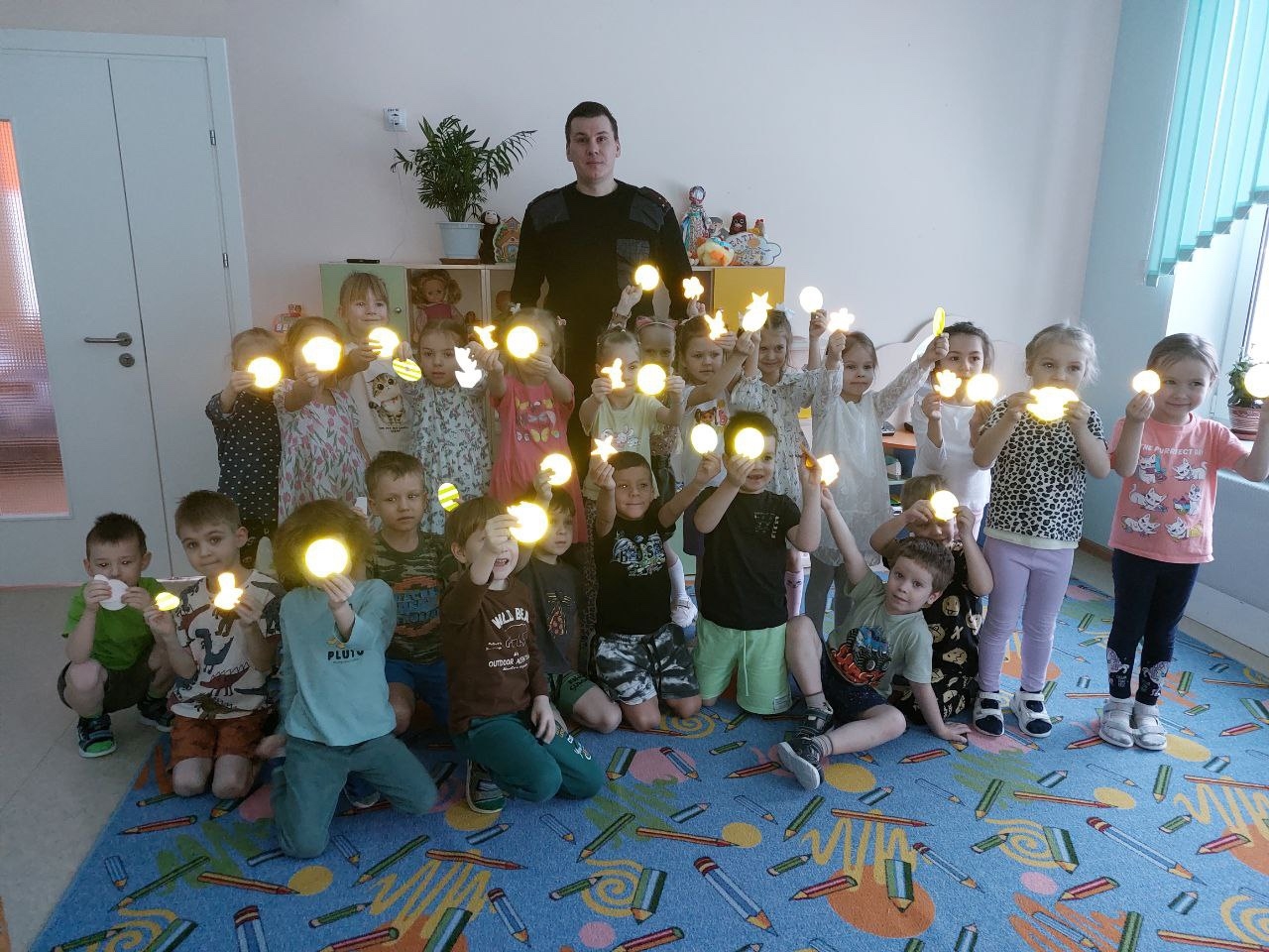 Автоинспектор Константин Крылов рассказал дошкольникам о главных правилах безопасности в зимний период, когда рано темнеет и часто бывает гололёд. Особый акцент он сделал на важности световозвращающих элементов. После беседы и просмотра познавательного мультфильма дети под руководством взрослых взялись за изготовление ярких аксессуаров из специальной светоотражающей плёнки.