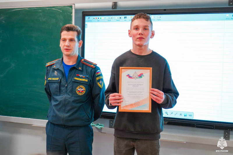 Учащегося 9 «Б» класса средней общеобразовательной школы №3 Мирона Константинова наградили благодарственным письмом Главного управления МЧС России по Республике Карелия.
