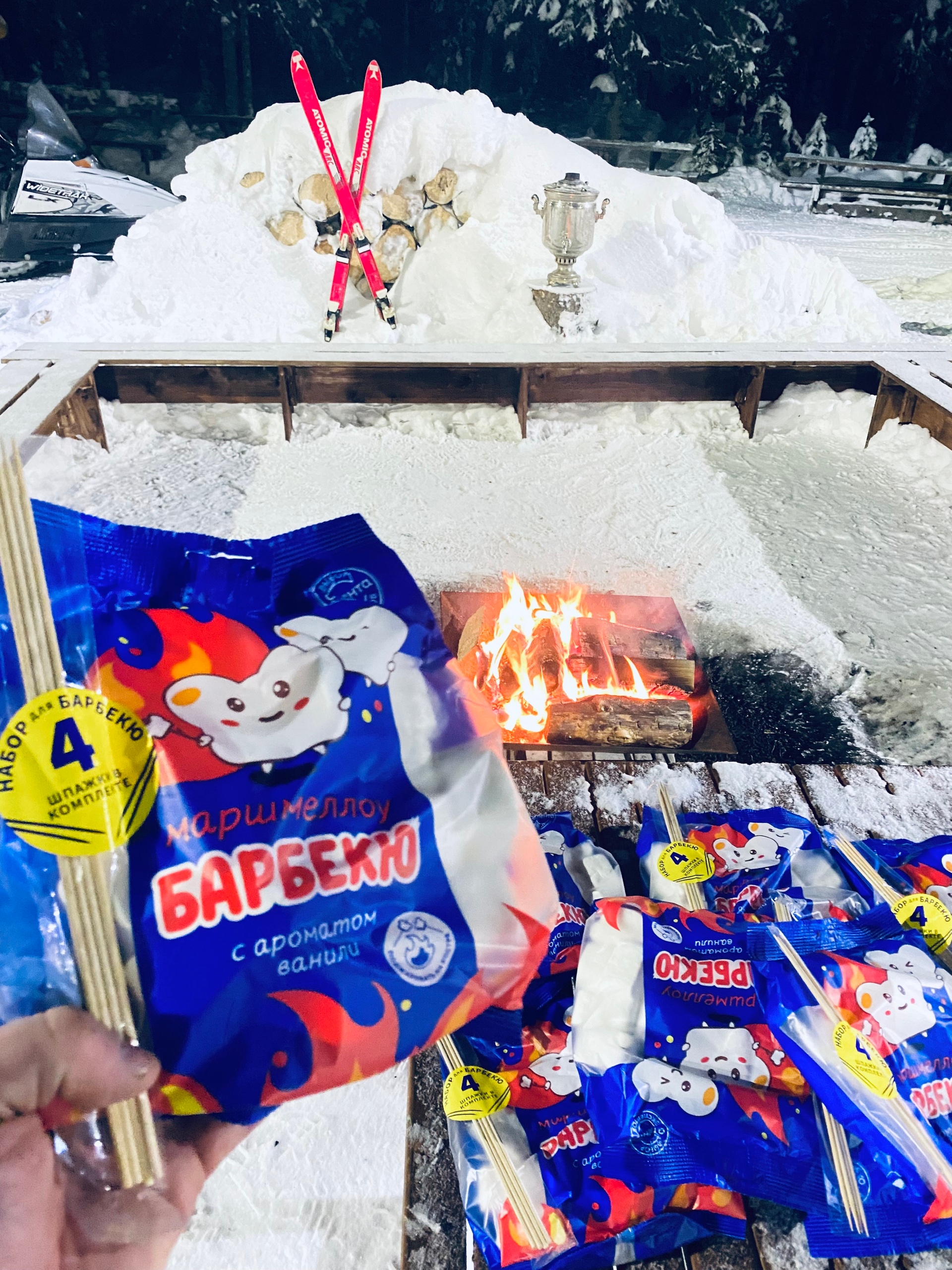 — Ребята, будите маму и папу, берете бабушку, дедушку из гаража и все на лыжи. Уже совсем скоро в 11.00 начнется снежный праздник. А первым 10-ти семьям (минимум из 4-х человек), кто приедет к нам на развилку на лыжах, получит бесплатно маршмеллоу, для семейной костровой чаши на развилке, - написали организаторы праздника в паблике «Трасса Фонтаны Петрозаводск» в ВК.