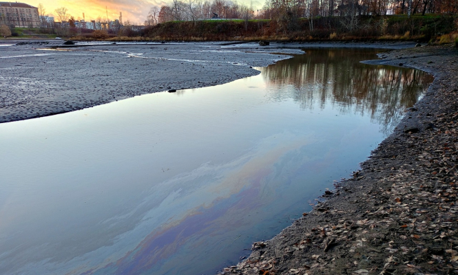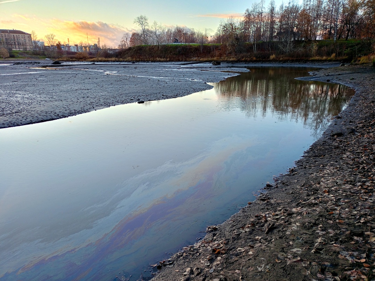 Информация о появлении пятен нефтепродуктов в Лососинке в районе Пименовского моста появилась на днях в соцсетях. На место выезжали специалисты Минприроды, но источника загрязнения не нашли. Сейчас ведомство начало расследование.