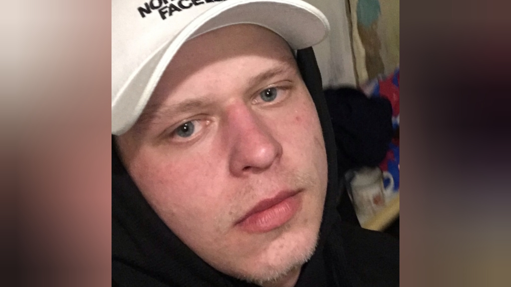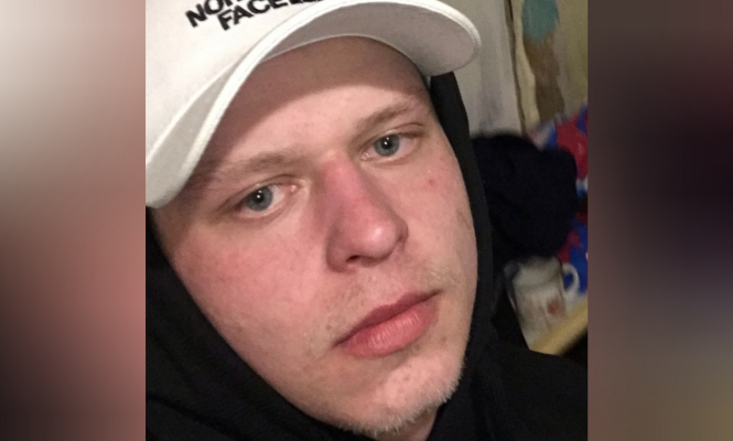 Молодой человек был одет в черную толстовку и синие джогеры.