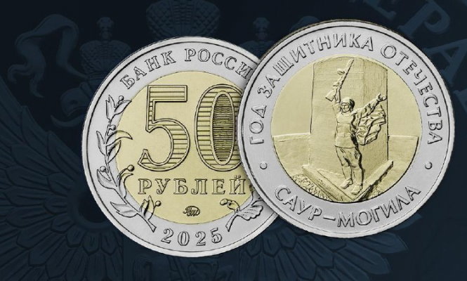 — На лицевой стороне монеты на кольце по окружности расположены надписи: в верхней части — «БАНК РОССИИ», в нижней части — «2025». Слева и справа на внешнем кольце расположены изображения ветвей лавра и дуба, переходящие на диск. В центре диска расположены число «50» и надпись «РУБЛЕЙ» под ним, обозначающие номинал монеты. Внутри цифры «0» имеется защитный элемент в виде числа «50» и надписи «РУБ», наблюдаемых под разными углами зрения к плоскости монеты. В нижней части диска расположен товарный знак Московского монетного двора, — подчеркнули в пресс-службе.