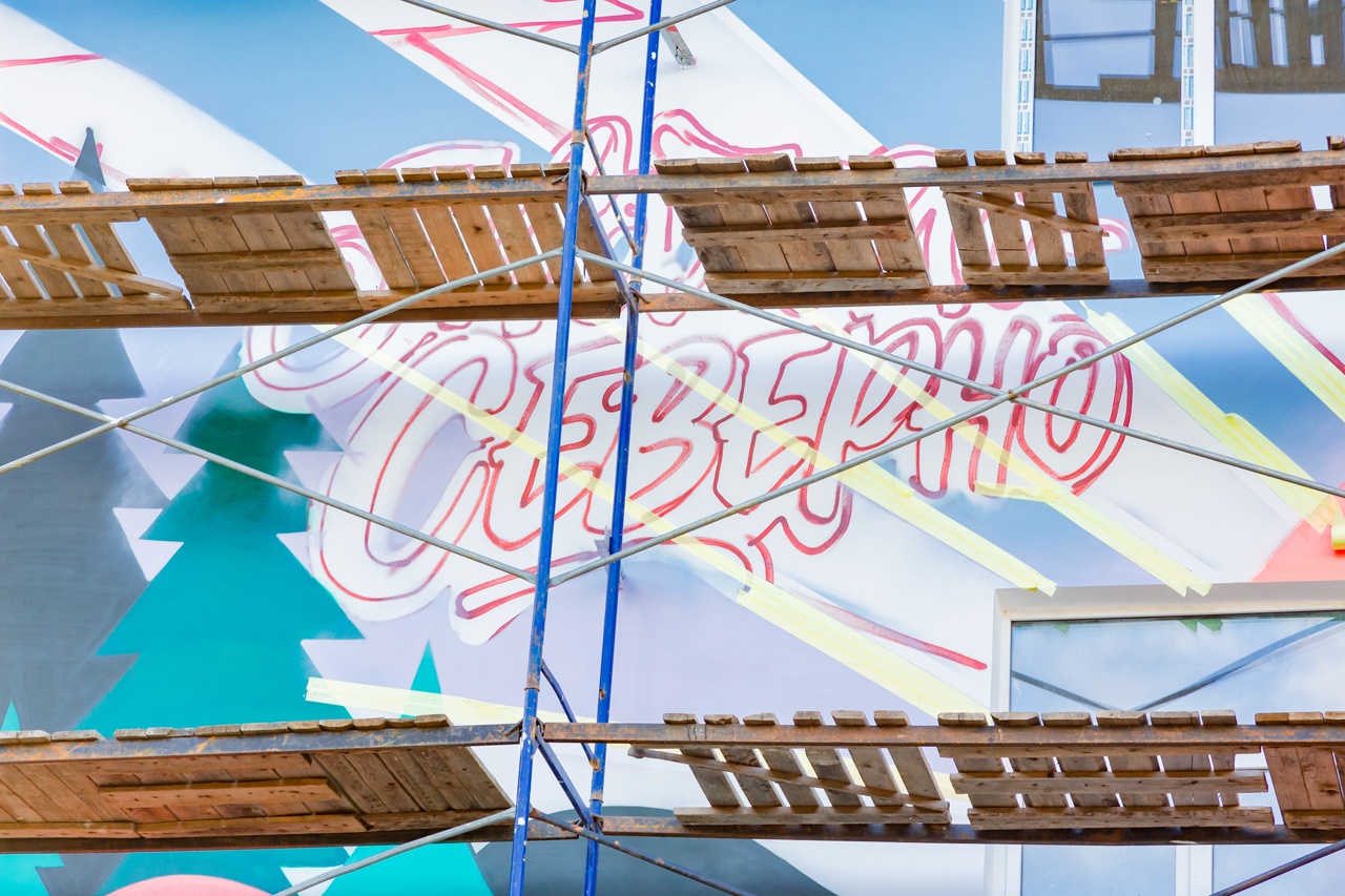 В Карелии продолжается фестиваль «Полоса отвода». Мурал, так называют большое изображение, уже проявляется на стене Дома молодежи.