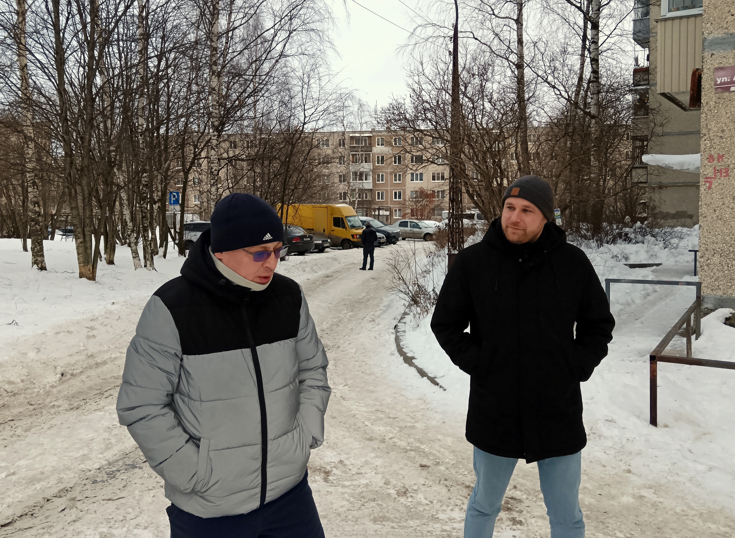 Депутат Петросовета Александр Ершов вместе со своим помощником Кириллом Поповым провёл рабочий объезд по трём адресам в своём девятом избирательном округе.