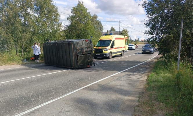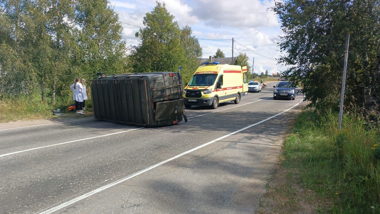 Сегодня в деревне Большаково Олонецкого района автомобиль марки «УАЗ-буханка» опрокинулся на бок во время езды, сообщили в Госкомитете Карелии по безопасности населения.