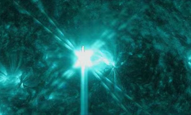 На данный момент зарегистрирован очень сильный импульсный рост излучения в области взрыва. Событие пока продолжается. Возможны повторные всплески, сообщает Лаборатория солнечной астрономии.