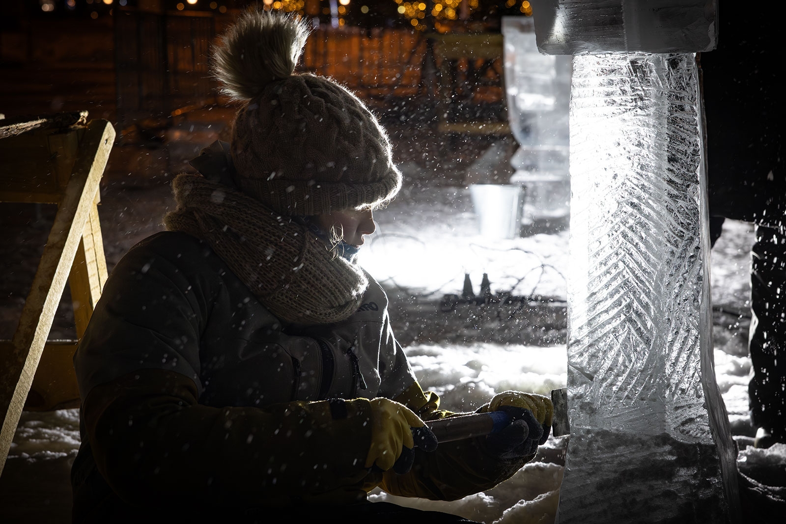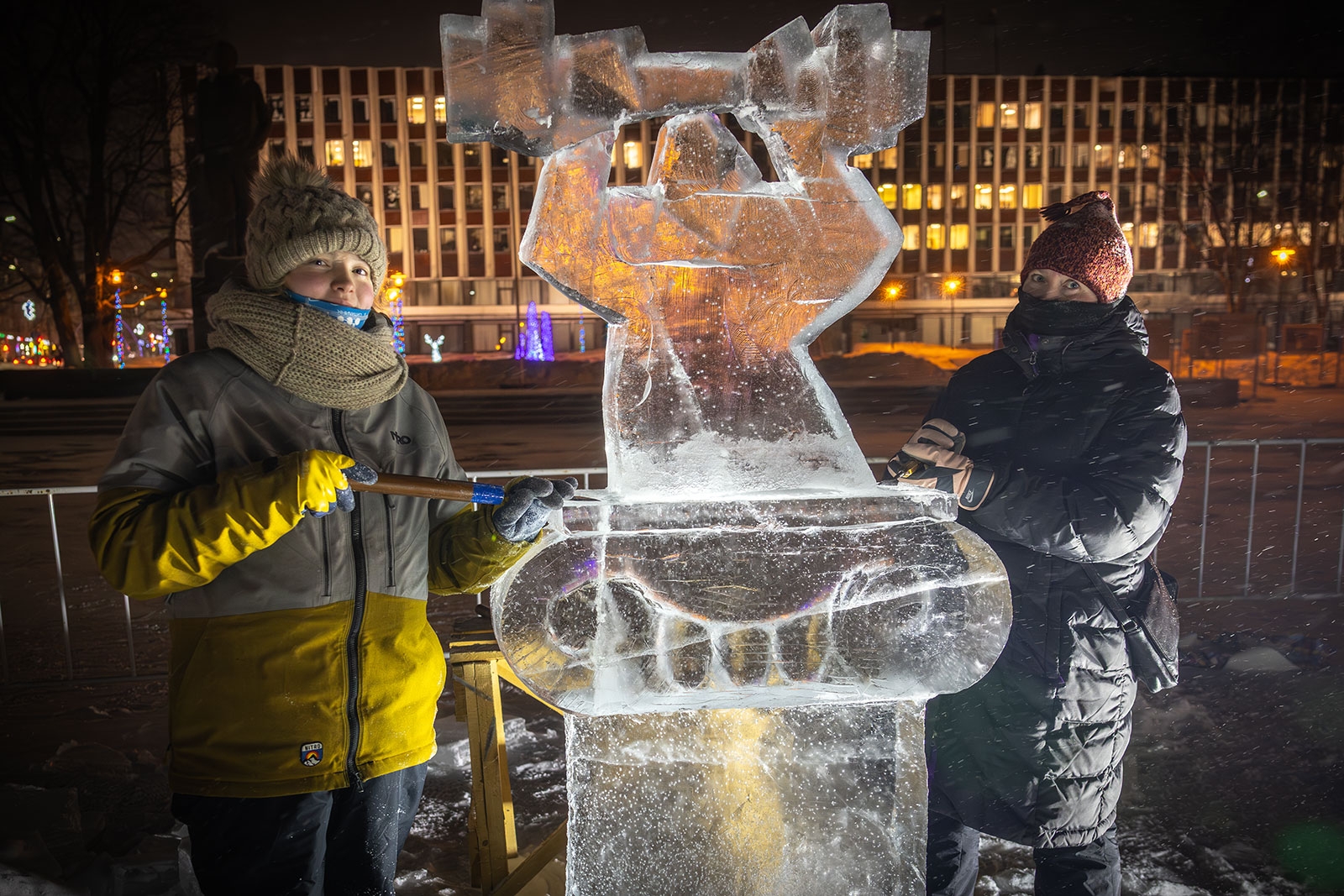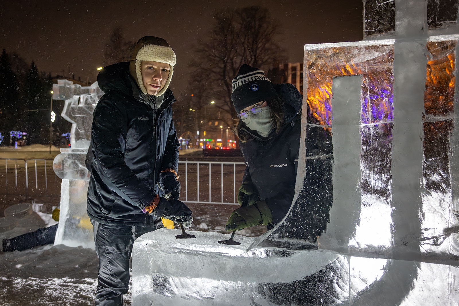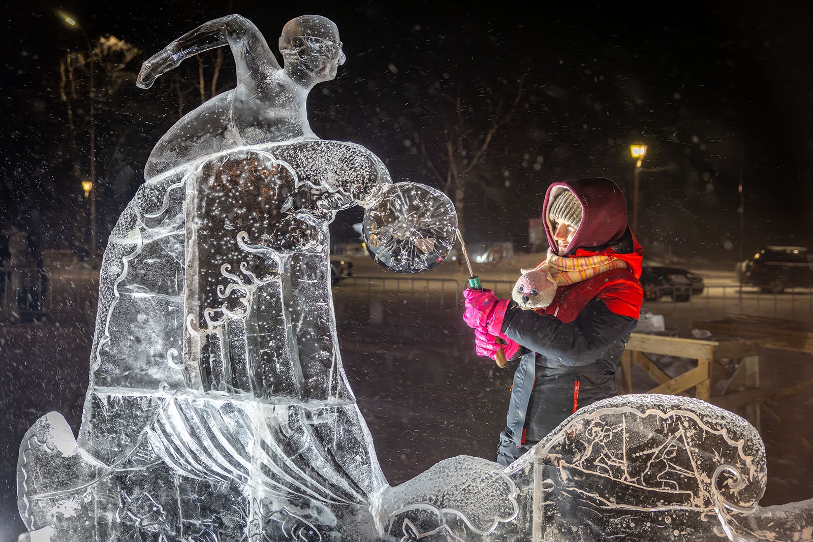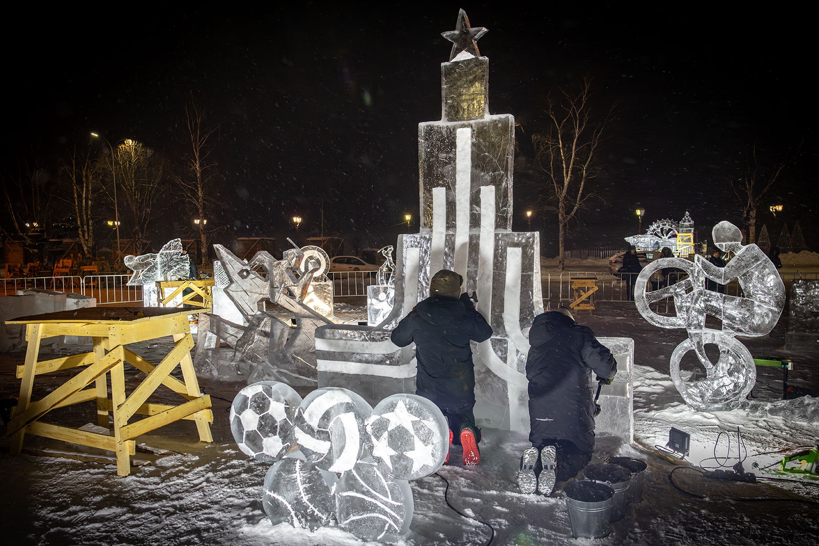 Петрозаводский фотограф Илья Тимин успел запечатлеть скульпторов за работой. В заключительный день многие из них работали глубоко затемно.