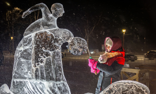 Петрозаводский фотограф Илья Тимин разместил фото ледовых работ учащихся Школы скульпторов.