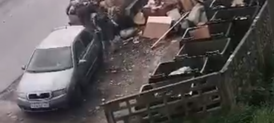 На записи видно, как неизвестные выбрасывают огромные мешки мусора рядом с пустыми контейнерами на улице Сулажгорская.