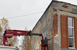 Сегодня в Питкяранте начали работу сотрудники Петербургской академии им. А.Л.Штиглица. Они проведут обследование мозаики, которую спасают местные активисты.