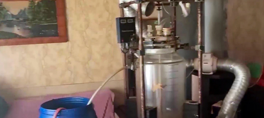 Наркодилеров задержали при силовой поддержке отряда специального назначения «Гром». Во время обыска найдено и изъято лабораторное оборудование, средства индивидуальной защиты, электронные весы, бочки и канистры с наркосодержащей жидкостью общей массой более 300 килограммов.