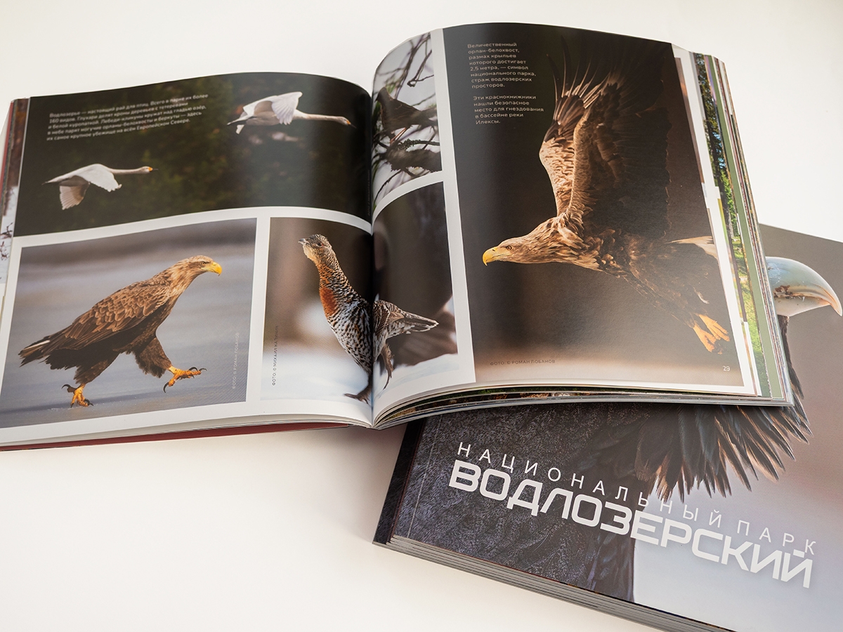Необычный фотоальбом о парках «Водлозерский» и «Воттоваара» издан в Карелии. В нем — потрясающие и редкие снимки двух парков, которые находятся в республике, и их обитателей. Сам альбом — это книжка-перевертыш.
