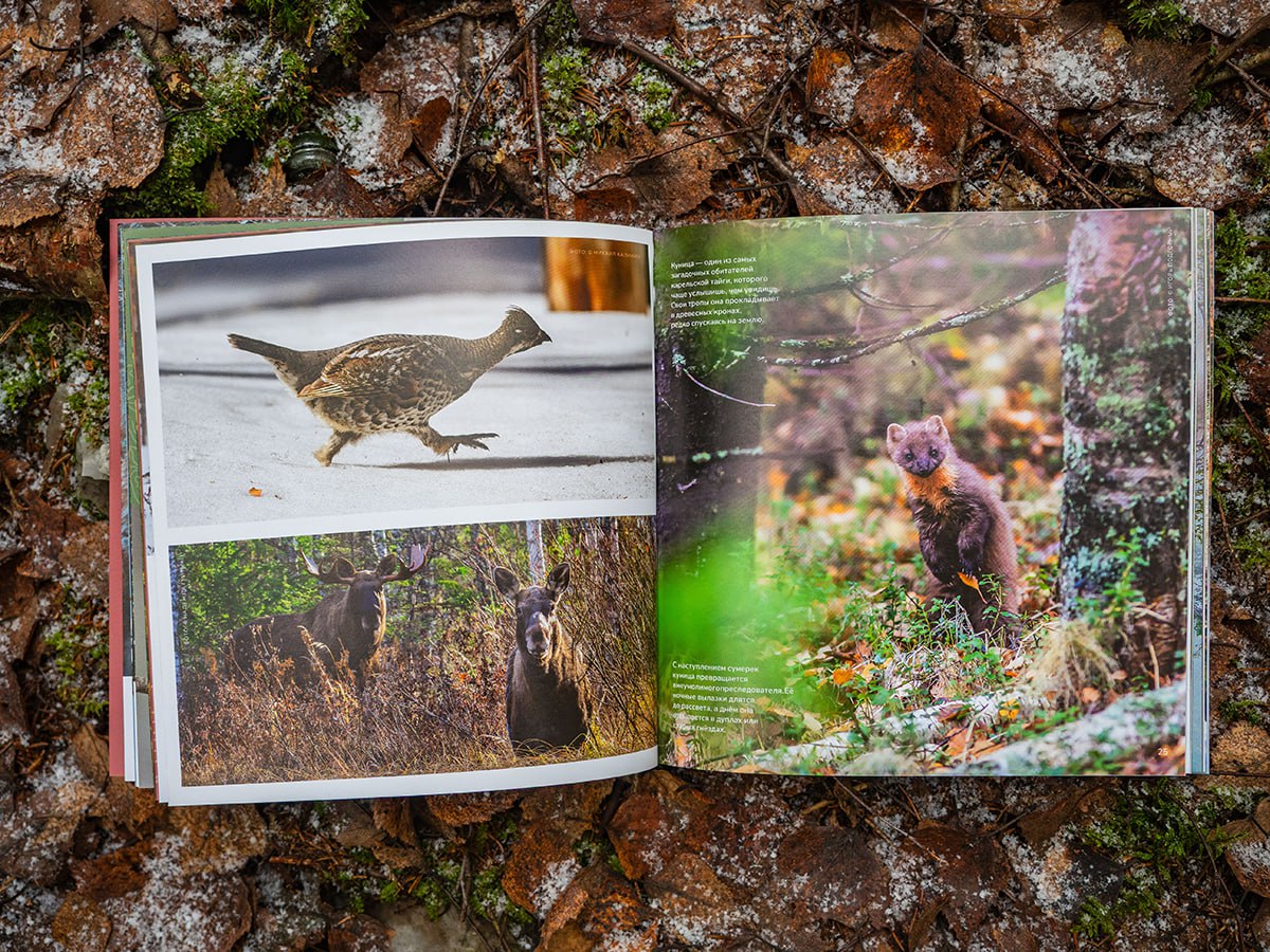 В альбоме снимки 20 фотографов-натуралистов. Среди них Игорь Подгорный, Игорь Шпиленок, Илья Тимин, Кирилл Пономарёв, Михаил Калинин и другие. Текст писал редактор нашего сайта «Столица на Онего» Евгений Белянчиков, которому, чтобы сохранить фактологическую точность, помогали сотрудники парка. В итоге получился написанный понятным языком, но основанный на научных данных, рассказ о двух ценных территориях Карелии.