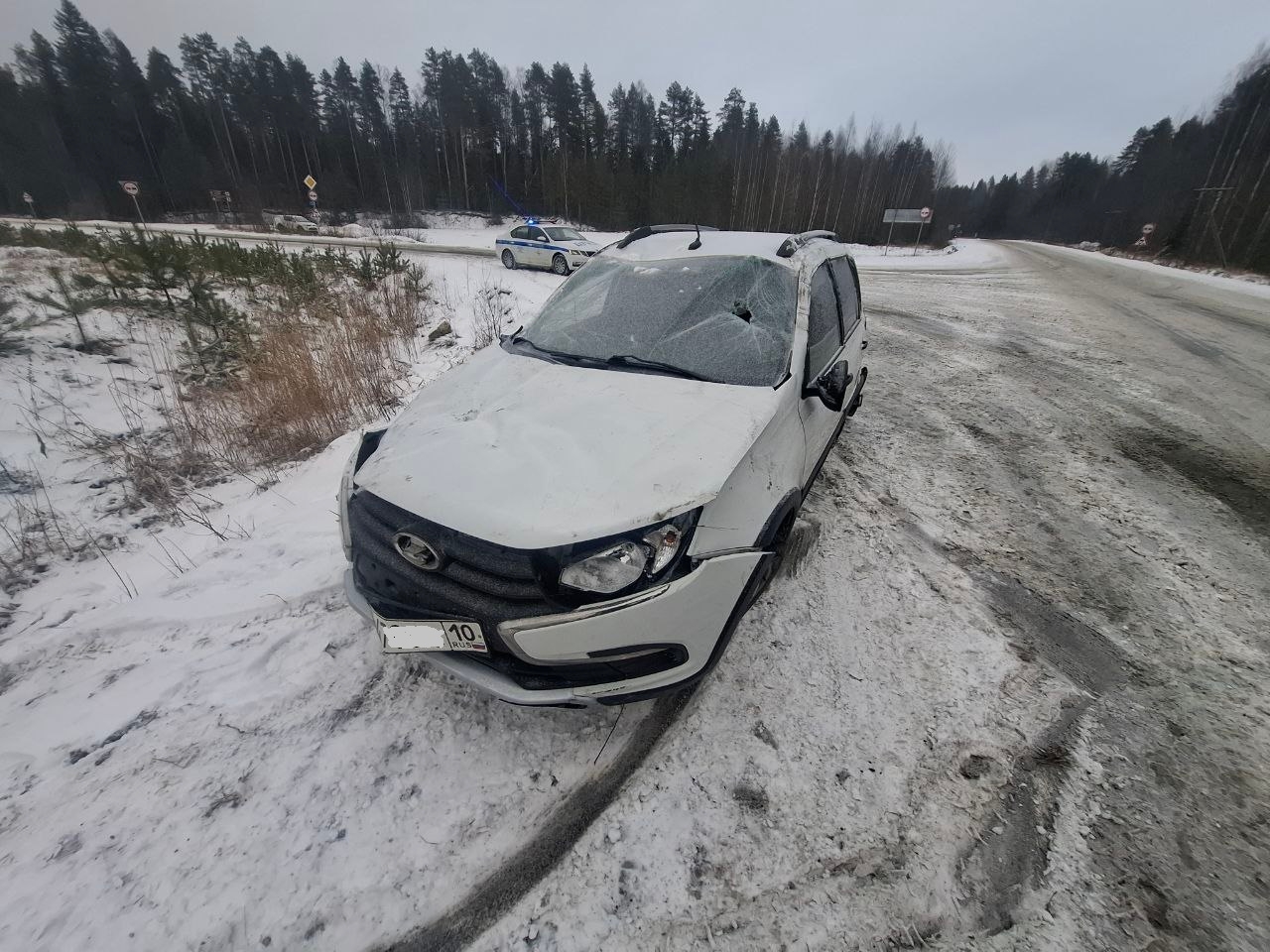 24 декабря в 08:50 на 61 км региональной дороги «Петрозаводск-Суоярви» (вблизи посёлка Эссойла в Пряжинском районе) автомобиль Lada Granta съехал в кювет и перевернулся, сообщили в ГАИ по Карелии.