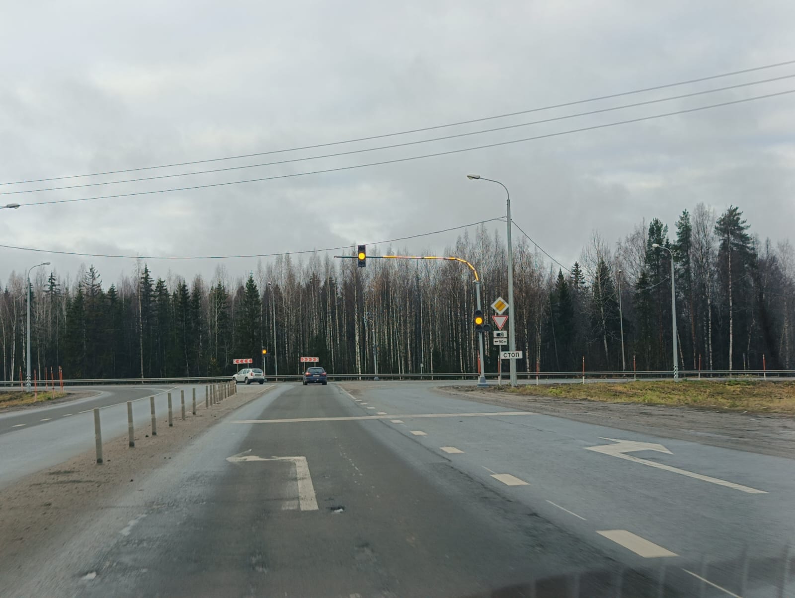 Новый светофор улучшит выезд на трассу «Кола» для транспорта, который выезжает из Петрозаводска.