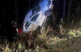 Автомобиль вылетел с трассы в Карелии и повис на дереве