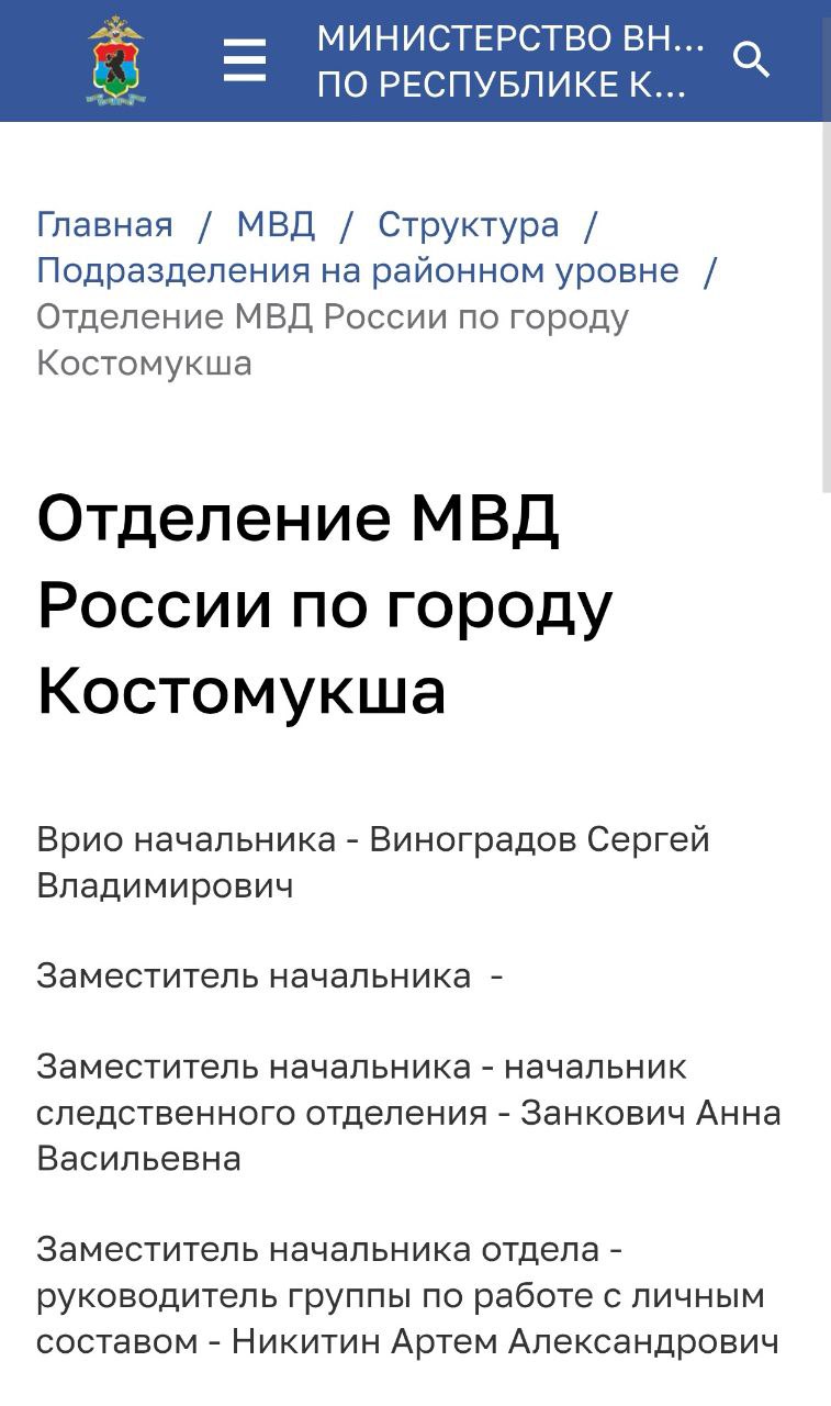Официально в МВД по Карелии фамилии участников драки не называют, но косвенным подтверждением причастности именно этих правоохранителей к конфликту стало внезапное исчезновение их имён с сайта местного отделения полиции.