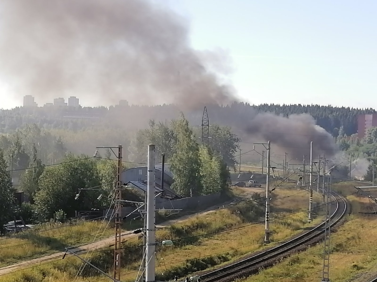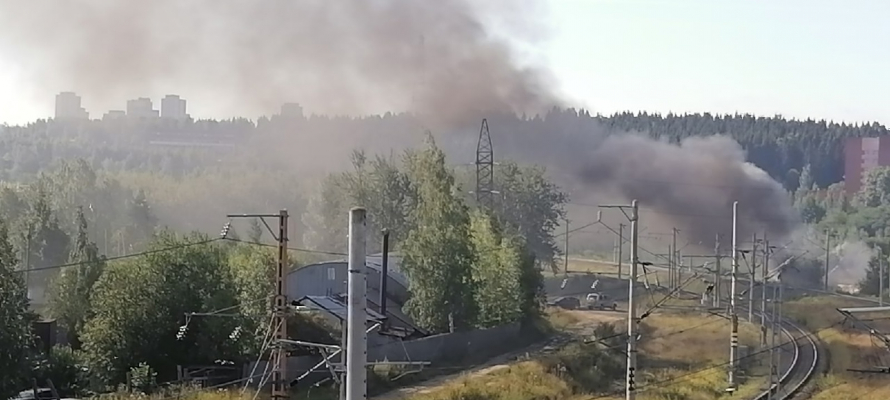 Сильный дым поднимается в районе, примыкающем к железнодорожному вокзалу Петрозаводска.
