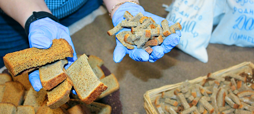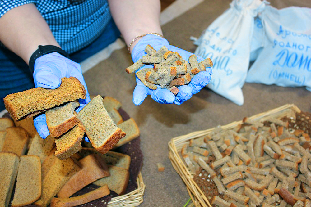 Уже готова большая партия хрустящих хлебных корочек. Специально для них сшили мешочки изо льна. В ближайшее время теплые гостинцы отправятся на передовую.