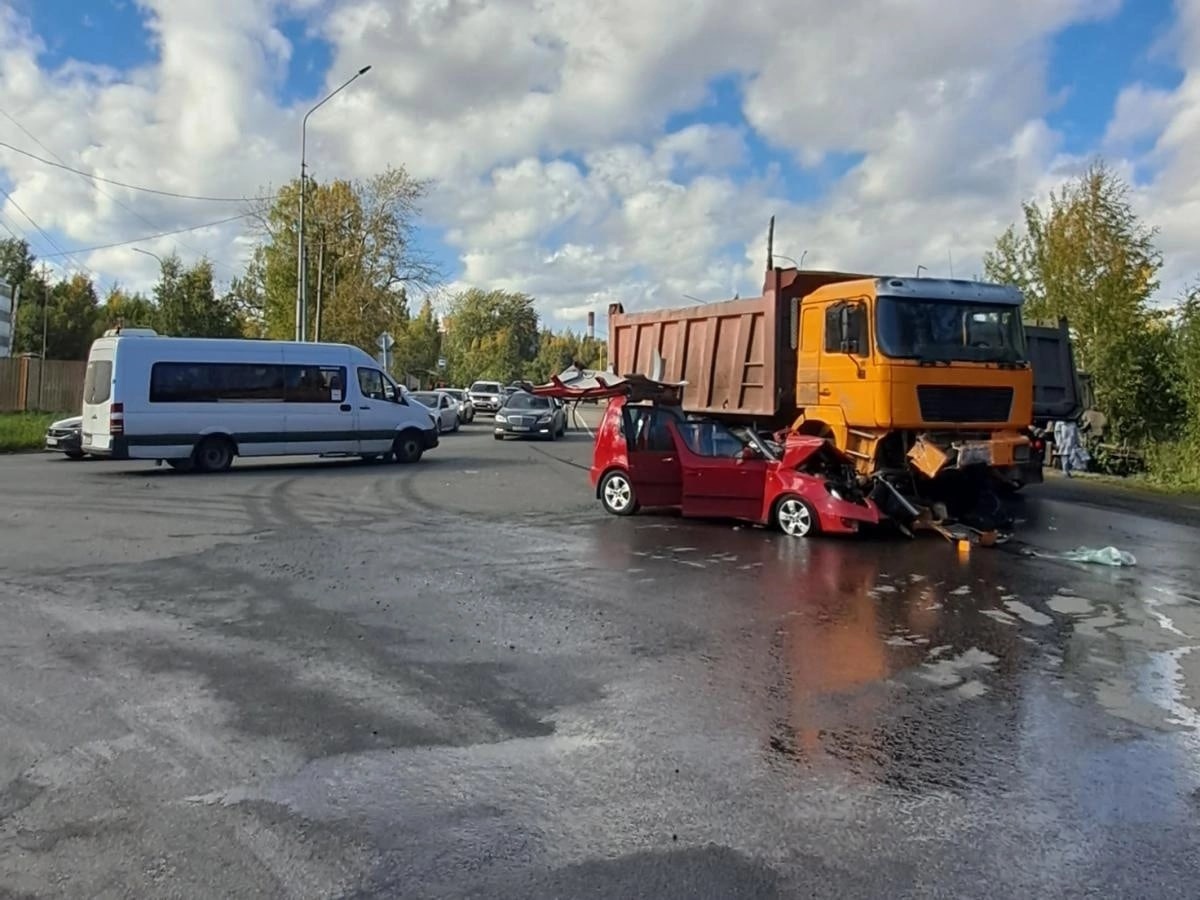 Днем 22 сентября на пересечении Лесного проспекта и Боровой улицы грузовик протаранил две легковушки.
