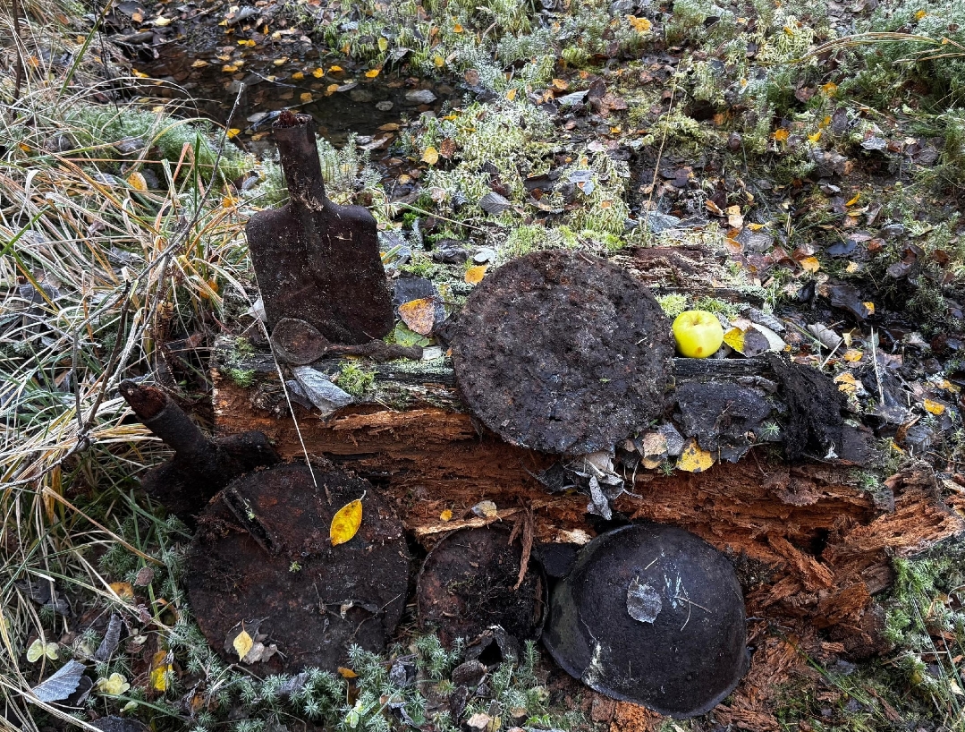 Там 18 октября поисковики фонда Александр Гагарин и Иван Ярмончик в ходе раскопок обнаружиои останки троих бойцов РККА. Рядом с погибшими были найдены предметы снаряжения и личные вещи.