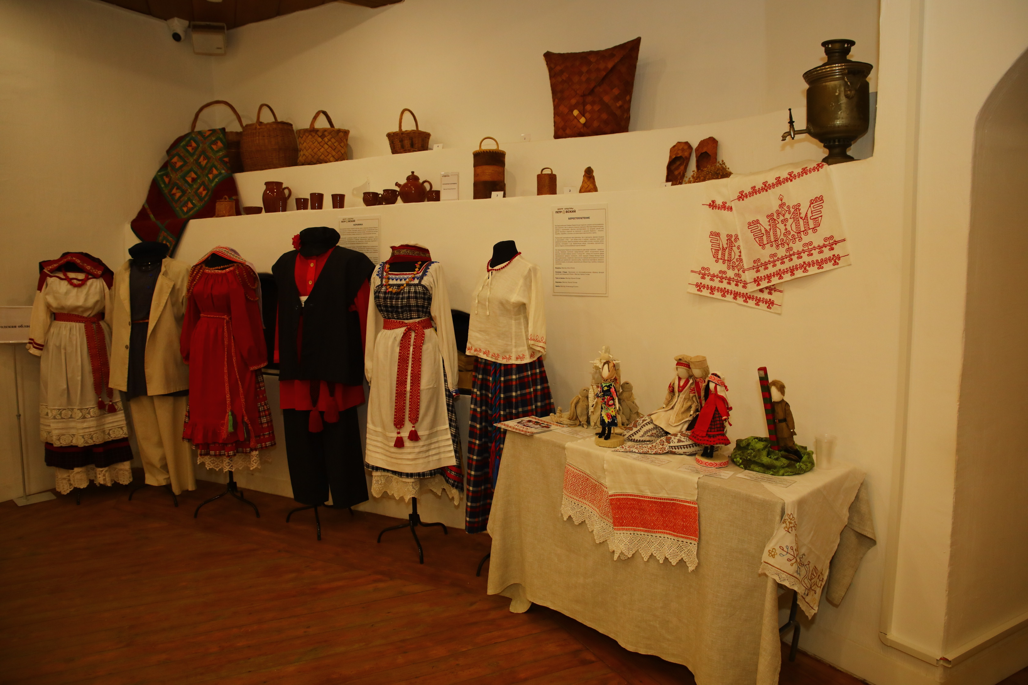 Экспозиция знакомит гостей с богатейшими ремёслами и традициями Поморья, вепсов, саамов, карелов, народа сето, а также мастеров Вологодской области и Заонежья.