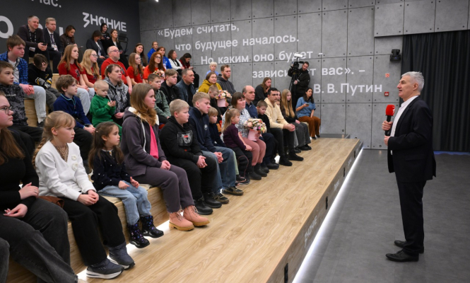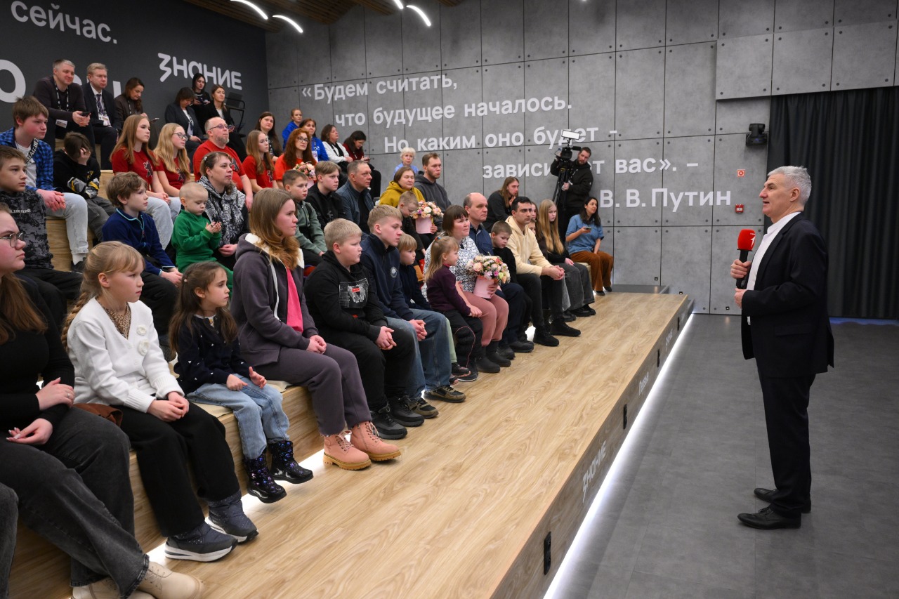 Перед экскурсией многодетные родители и дети встретились с Артуром Парфенчиковым. Взрослые благодарили Главу региона за предоставленную возможность посетить Национальный центр «Россия».