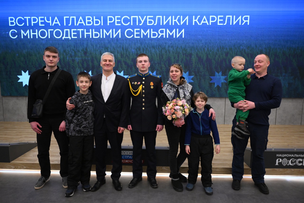 31 января в Национальном центре «Россия» состоялось по-семейному теплое мероприятие: посетить карельскую экспозицию приехали сразу пять дружных многодетных семей. Четырем из них в 2025 году Артур Парфенчиков вручил медали ордена «Родительская слава».