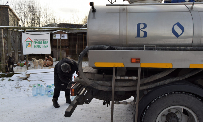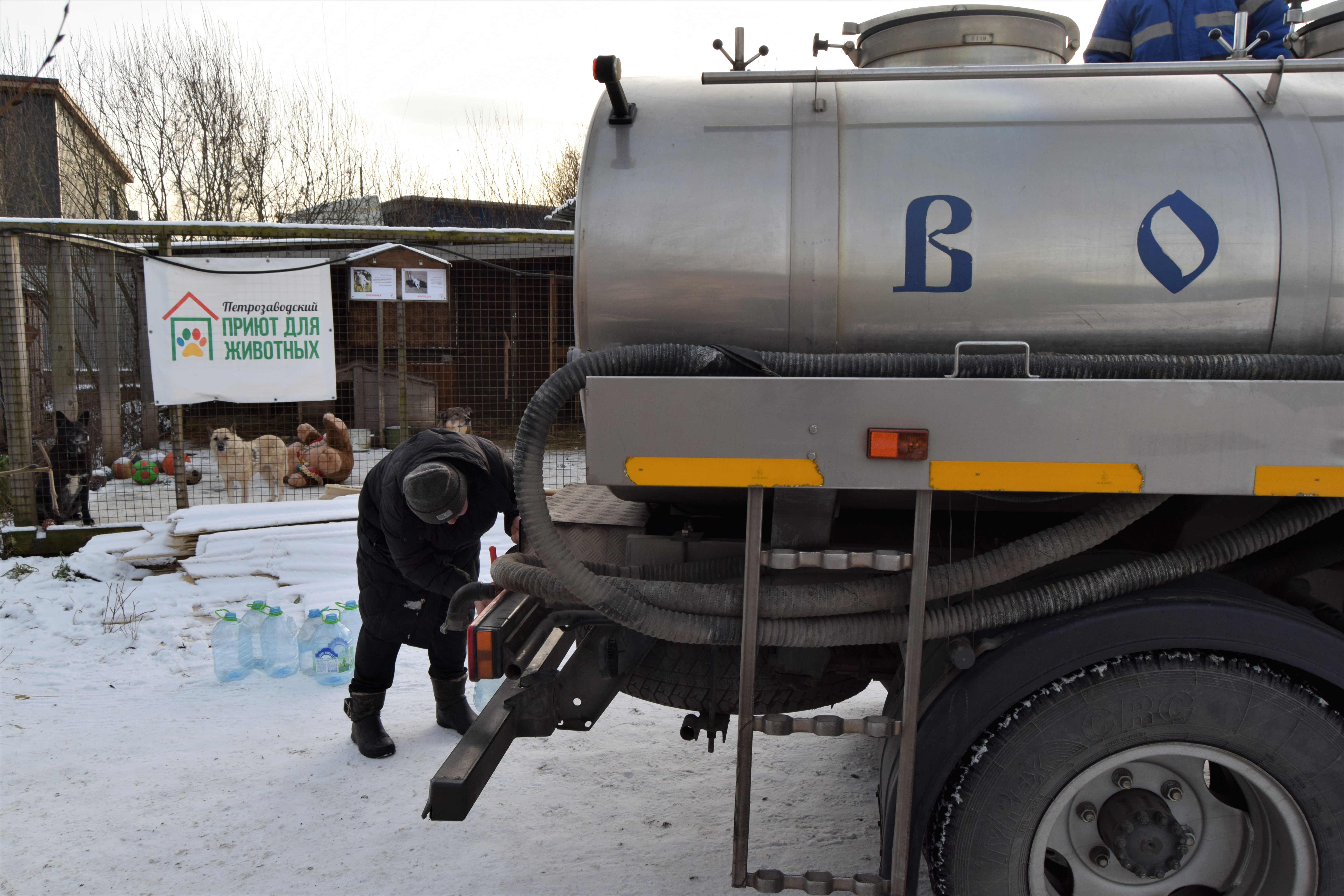 Сегодня автоцистерна с питьевой водой от «ПКС-Водоканал» прибыла в Первый общественный приют. Организация осталась без водоснабжения из-за повреждения на