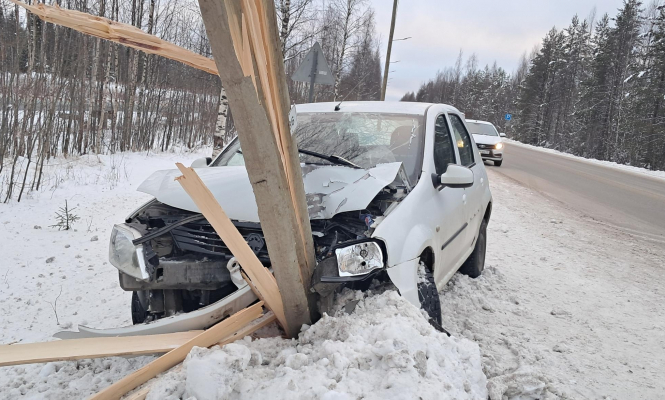 Как рассказали в ГАИ, 50-летний водитель Renault Logan не справился с управлением, автомобиль съехал с дороги и врезался в опору освещения.