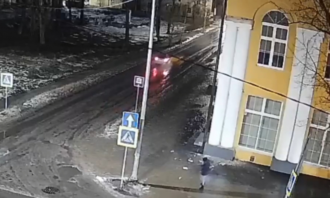 Подрядчик не торопится по гарантии ремонтировать здание, кусок колонны которого обвалился рядом с пешеходом.