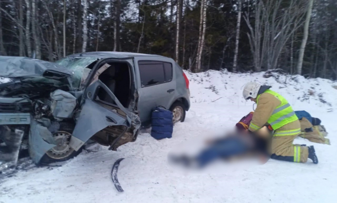 Госкомитет Карелии по безопасности опубликовал фотографии с места страшной аварии, которая произошла сегодня утром в Беломорском округе.