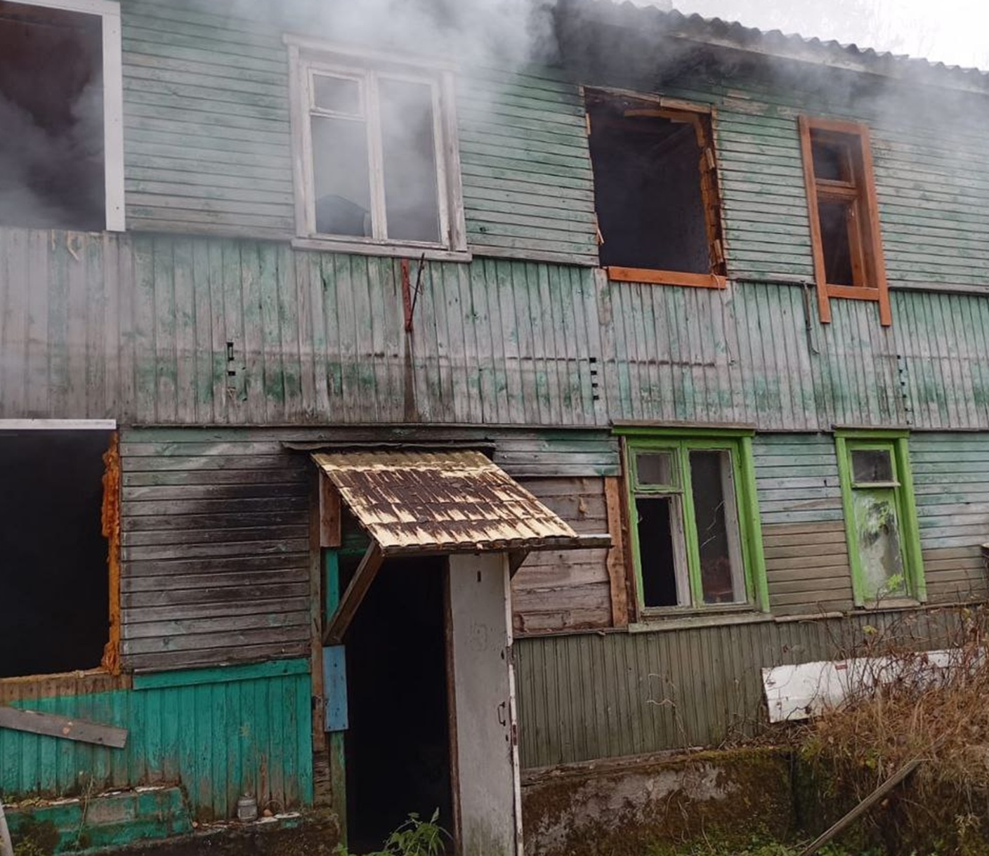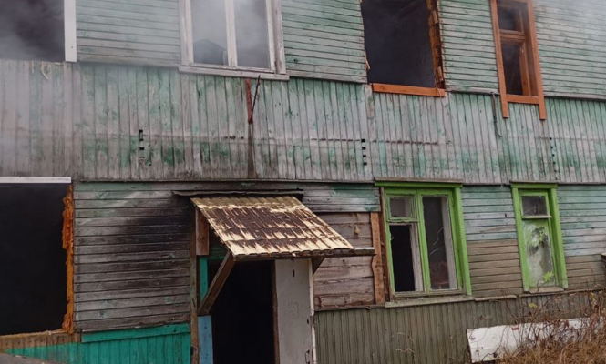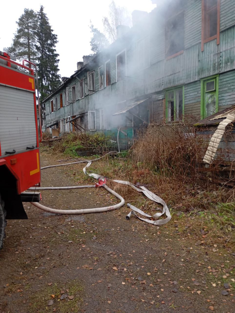 Спасатели тушили возгорание в нежилом двухэтажном деревянном доме в Суоярви