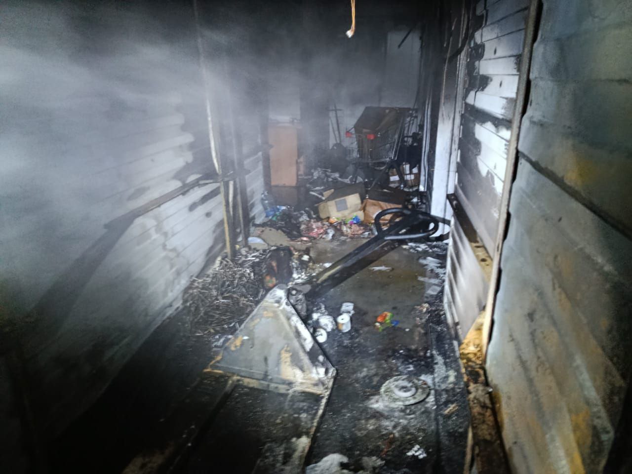 На место ЧП прибыли шестеро огнеборцев. Выяснилось, что пламя охватило подсобное помещение супермаркета, располагающегося на первом этаже пятиэтажного жилого дома. При помощи бензореза специалисты вскрыли железную дверь, ведущую внутрь хозяйственной комнаты.