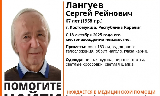 В Костомукше пропал Лангуев Сергей Рейнович. Мужчине 67 лет.