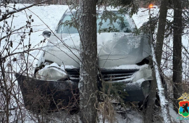 Иномарка разбилась, врезавшись в дерево на обочине трассы в Карелии.