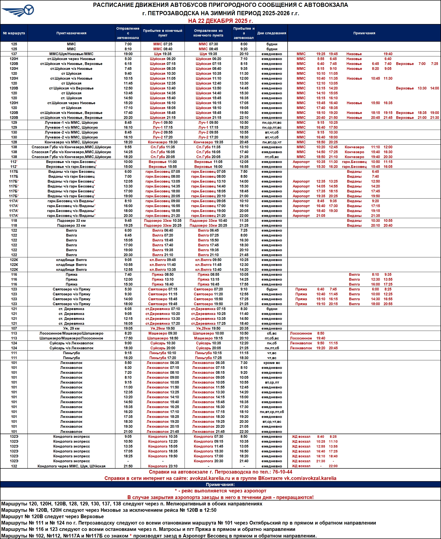 С 22 декабря 2025 года в расписание пригородных рейсов автовокзала Петрозаводска вносятся изменения. Как сообщил «Карелавтротранс», часть рейсов будет выполнена по ускоренному графику:
