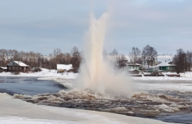 Спасатели два дня взрывали ледовые заторы на реке Нижний Выг в Беломорске
