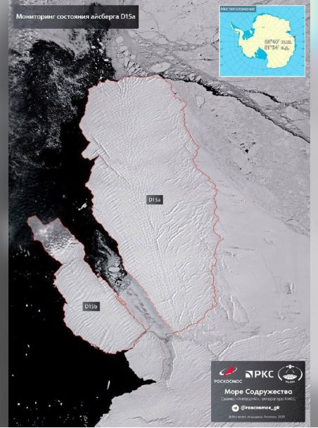 Титул самого большого айсберга в мире D15a получил после того, как предыдущий рекордсмен, айсберг A23a, потерял 67% своей первоначальной площади. Эти данные ранее были подтверждены специалистами Арктического и антарктического научно-исследовательского института (ААНИИ).