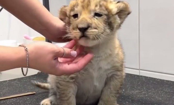 Львенка принесли в груминг-салон подстричь ногти. Видео попало в сеть и привлекло внимание Росприроднадзора.