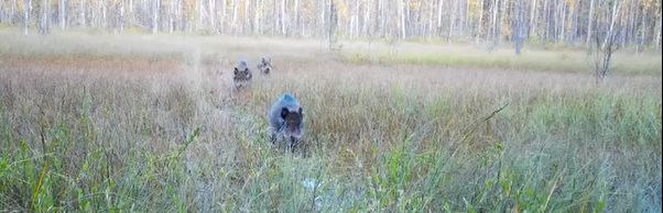 Шествие кабанов через болото. Видео с фотоловушки Нижне-Свирского заповедника, - написали в паблике.