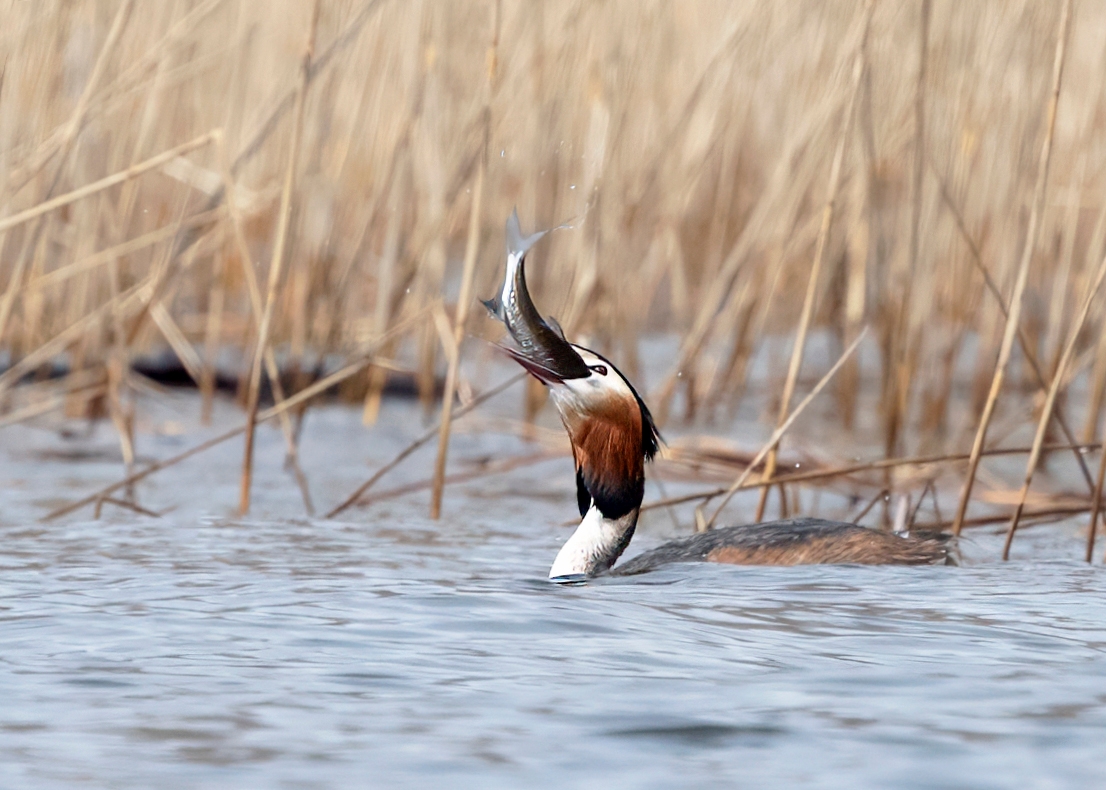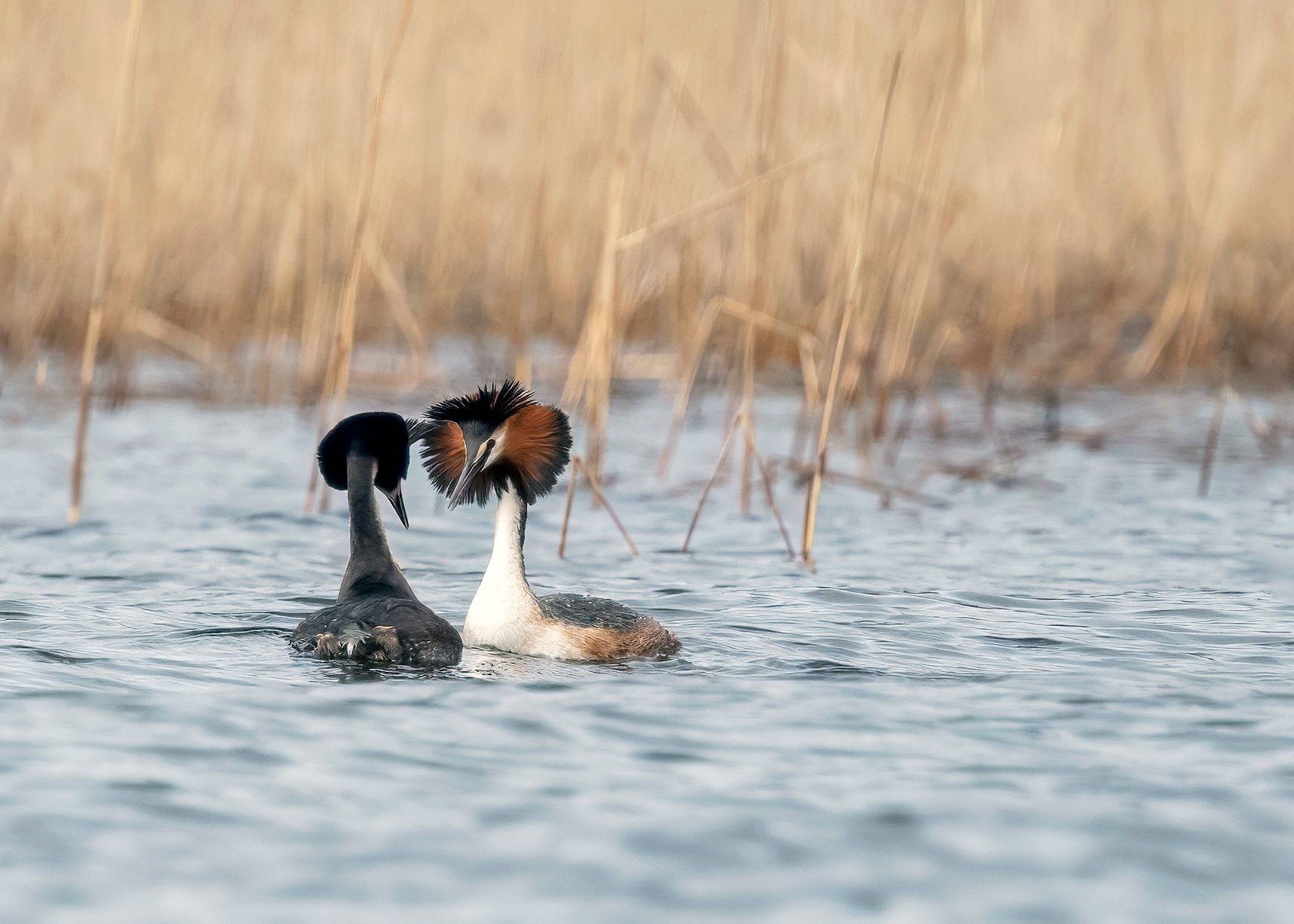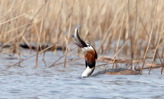 — Это очень интересная птица, она строит плавучие гнезда.Перед созданием семьи самец и самка устраивают красивый ритуал. Они вместе ныряют на дно, достают клювами ил и водоросли и показывают свою «добычу» друг другу. Это не просто игра, а важная проверка навыков. Партнер выбирается по тому, кто может достать больше материала. Вся жизнь чомг связана с водой, и их гнездо требует постоянного ремонта. Когда одна птица сидит на яйцах, а её сменяет партнёр, тот обязательно приносит свежий материал со дна, чтобы подлатать сооружение. От постоянного использования гнездо проседает и размокает, поэтому его нужно всё время укреплять. Таким образом, ритуал помогает найти самого умелого и надежного строителя, который обеспечит безопасность будущего потомства.