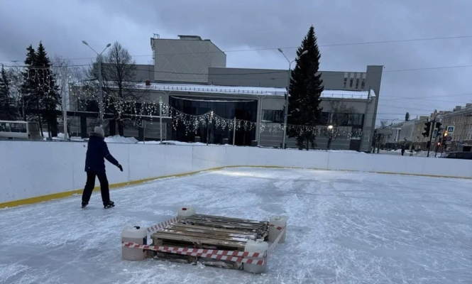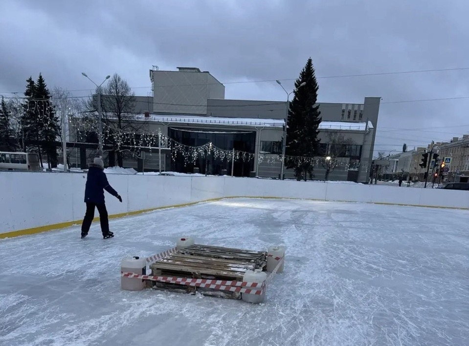 На катке в центре Петрозаводска установлено ограждение в связи с ремонтом системы охлаждения объекта.