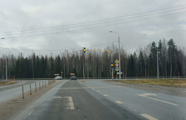 Новый светофор установили на выезде с Пряжинского шоссе на трассу «Кола» около Петрозаводска