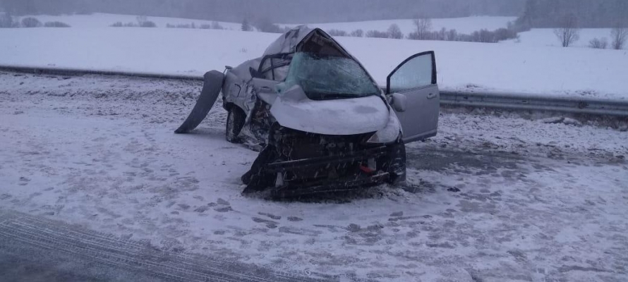 В 16.35 на 3 км автодороги "Подъезд к п. Вяртсиля" 67-летний водитель автомобиля Nissan Tiida совершил наезд на дорожное ограждение. От удара автомобиль отбросило на полосу встречного движения, где произошло столкновение с грузовым автомобилем Scania.