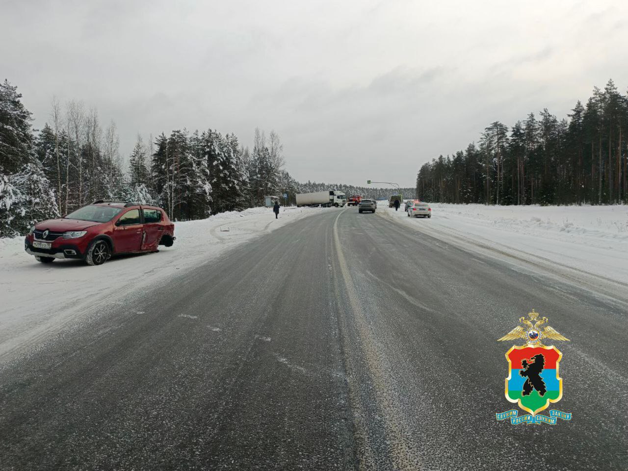 Сегодня, 2 февраля, примерно в 13:22, на 267-м километре федеральной автодороги Р-21 «Кола» в Олонецком районе произошло тяжёлое дорожно-транспортное происшествие с участием трёх автомобилей. По предварительной информации полиции, водитель автомобиля Kia, двигавшийся в направлении Санкт-Петербурга, выехал на полосу встречного движения, где столкнулся с двумя машинами: легковым Renault и грузовым КАМАЗом.