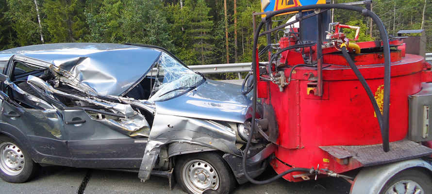 Водитель автомобиля в Карелии протаранил спецмашину для нанесения дорожной разметки, в результате рабочий получил травмы.